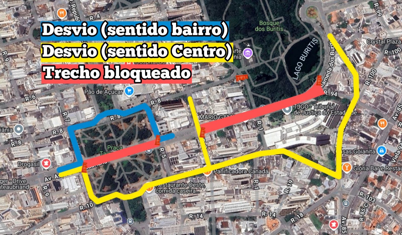 – Sentido Bairro: Rua 94, Avenida 85, Avenida República do Líbano e Ruas 05, 08 e 07