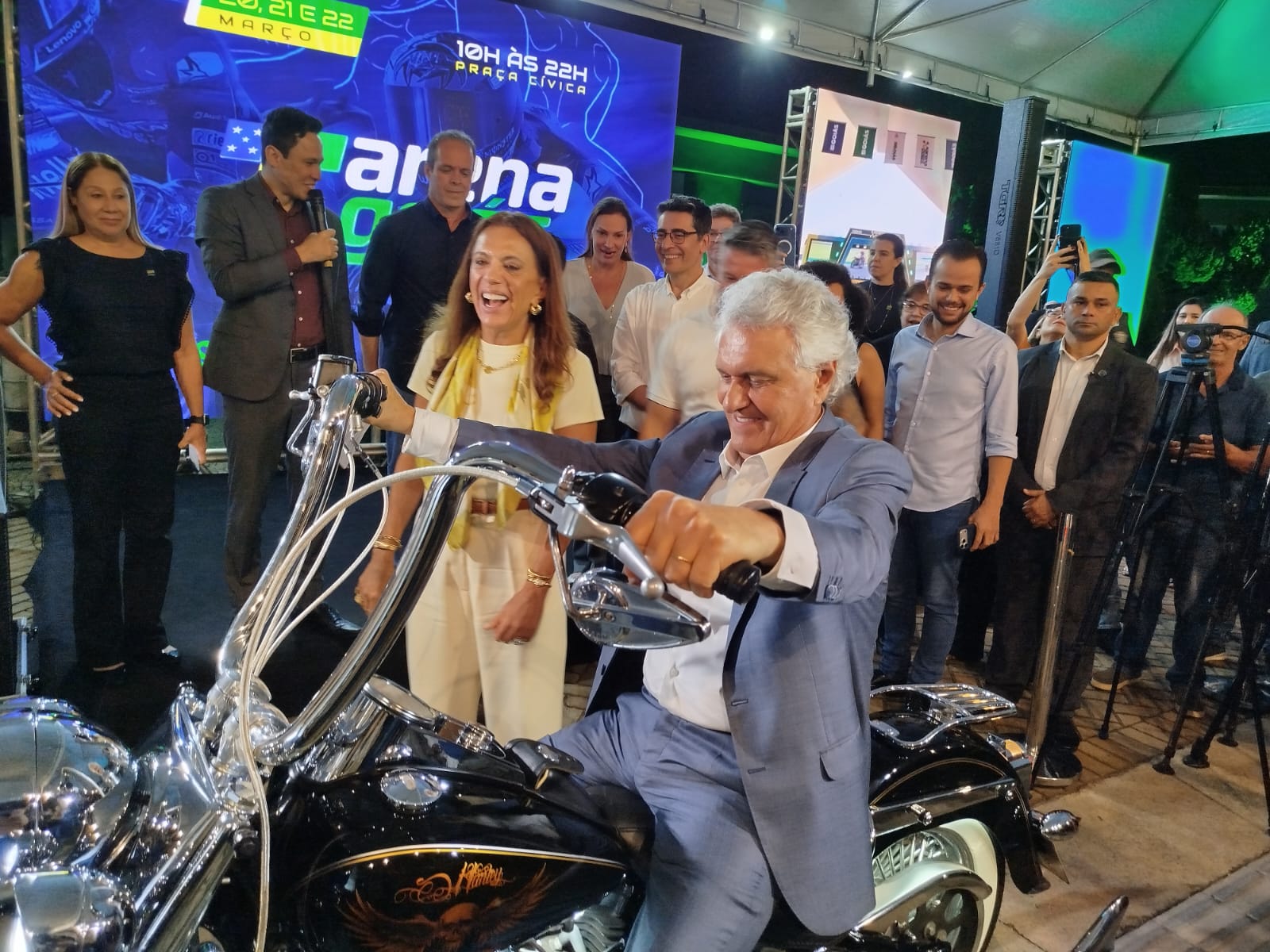Goiânia – Com a promessa de que ninguém ficará de fora do MotoGP, o governador Ronaldo Caiado lançou, nesta quarta-feira (11/3), a Arena Goiás – uma estrutura que será montada na Praça Cívica em Goiânia, para transmissão simultânea do MotoGP. “É uma oportunidade para quem não conseguir ir ao Autódromo”, disse o chefe do Executivo estadual, se referindo ao fato de que os ingressos para alguns setores já estão esgotados. Para acompanhar o evento ao vivo, os amantes da motovelocidade estão desembolsando entre R$250 e R$3,5 mil.
