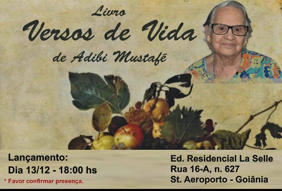 Goiânia – Em celebração à vida literária de Adibi Mustafé Martins, amigos e convidados da autora se reúnem no próximo sábado (13/12), a partir das 18 horas, para prestigiar o lançamento de “Versos de Vida”, coletânea organizada por seu filho, o cantor e compositor goiano, Valter Mustafé. O título apresenta textos de diferentes fases da trajetória da mineira de Campina Verde que escolheu Goiás para criar os filhos e ver crescer netos e bisnetos.
