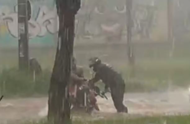 Homem é arrastado pela enxurrada durante fortes chuvas em Goiânia, na segunda-feira (5/1) (Foto: reprodução)
