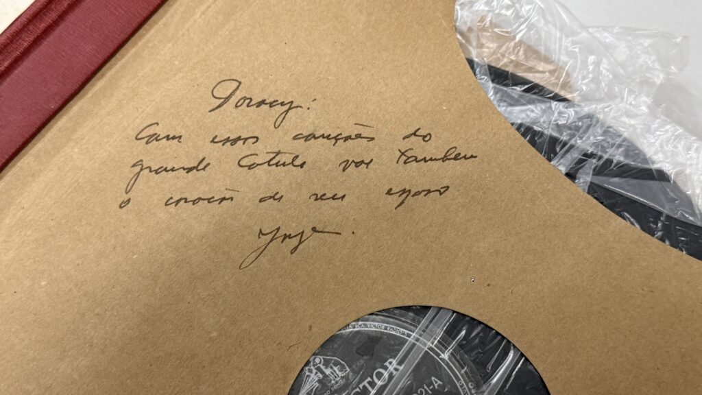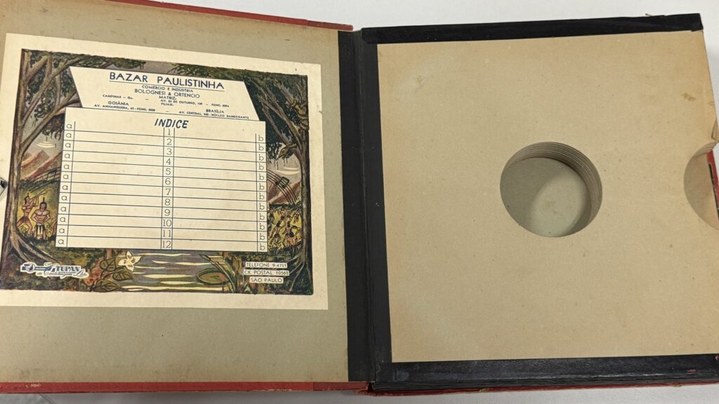 O percurso do acervo acompanha a própria evolução da indústria fonográfica. Dos discos de cera, com apenas uma música de cada lado, o acervo avança para os LPs de 10 polegadas (comuns nos anos 1950, com quatro faixas por lado), até chegar ao vinil de 12 polegadas, que dominou o mercado até o final da década de 1980. “O vinil nunca deixou de existir. Existe um apego muito grande, uma memória afetiva ligada a esse formato”, observa Gisele.