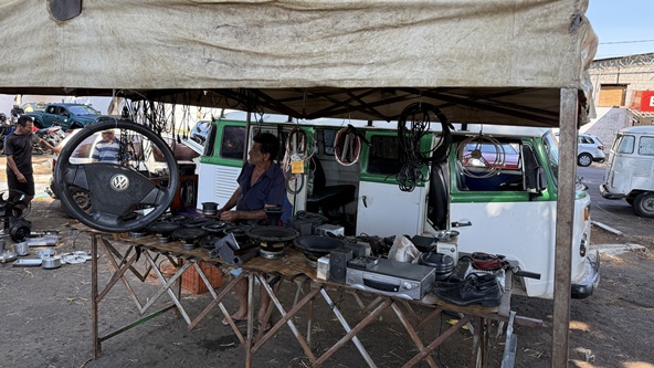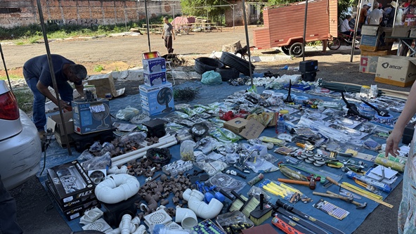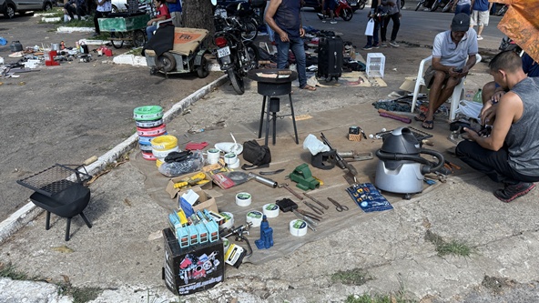 Goiânia – Uma mesa abarrotada de ferramentas antigas divide espaço com rádios sem antena, roupas de brechó, peças de bicicletas, controles remotos, carregadores, panelas, discos, quinquilharias de todas as épocas. À primeira vista, a Feira da Marreta parece um caleidoscópio de objetos improváveis. Nada está ali por acaso, embora tudo pareça fruto da casualidade. Trata-se de um mercado que desafia a lógica convencional, mas que segue uma lógica própria, moldada pelas mãos e histórias de quem o sustenta.