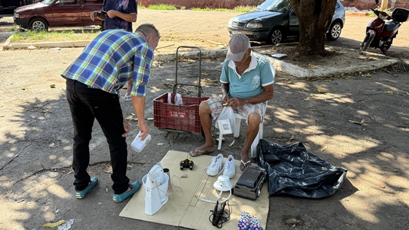 O que hoje se chama de “economia circular” já era prática corrente na Feira da Marreta muito antes da palavra entrar no vocabulário urbano. Mana destaca que muitos dos produtos vendidos ali são retirados do lixo, recuperados e transformados em objetos com valor de venda.
