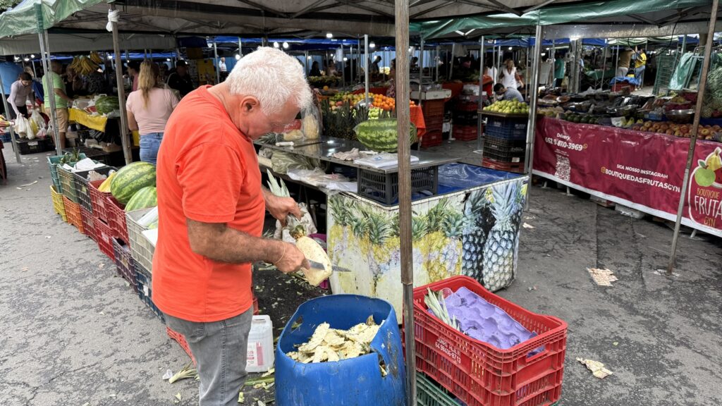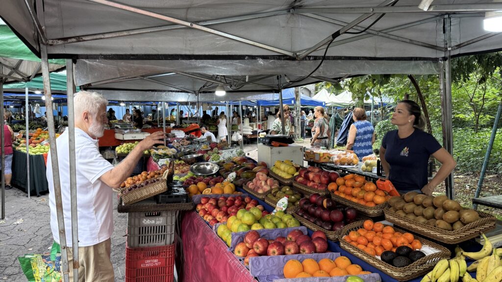 Goiânia – Antes mesmo de o sol firmar presença no céu de Goiânia, as ruas do Setor Oeste já começam a ganhar outro ritmo. O cheiro de fruta cortada, o peso das caixas descarregadas ainda na madrugada e as primeiras conversas entre fregueses antigos anunciam que é dia de feira. Às terças e sextas-feiras, das 8h às 13h, a Rua 29, na esquina com as ruas 1 e 4, se transforma no território da Feira Dom Bosco, uma das feiras livres mais tradicionais da capital.