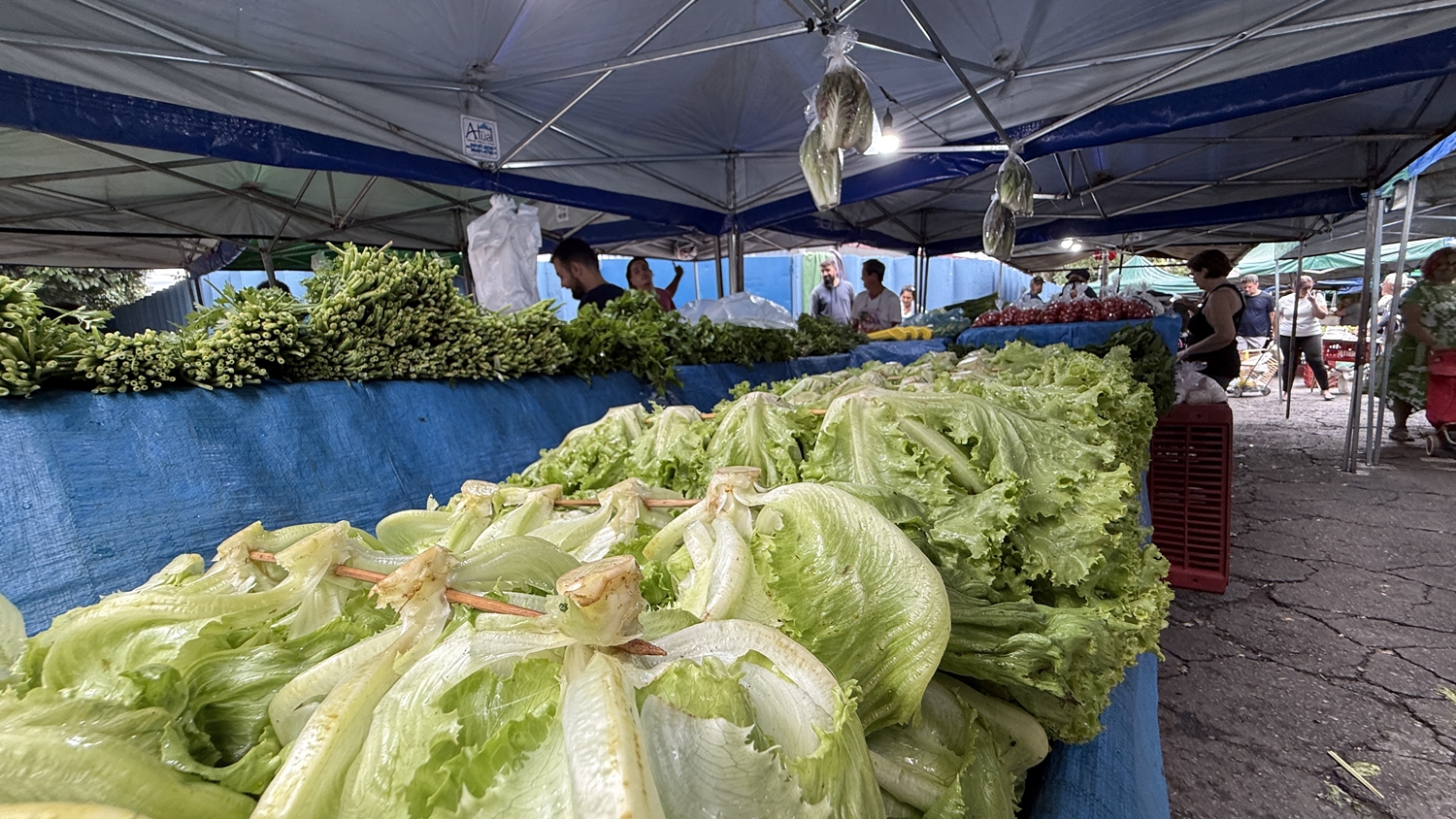 A melancia passou a integrar a banca durante a pandemia, quando as feiras foram suspensas e ela precisou adaptar a rotina. Passou a fazer entregas em domicílio para manter os clientes. “Eles pediam melancia e, quando pudemos voltar com a feira, mantivemos na nossa banca”, conta.