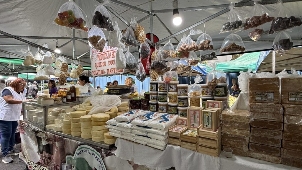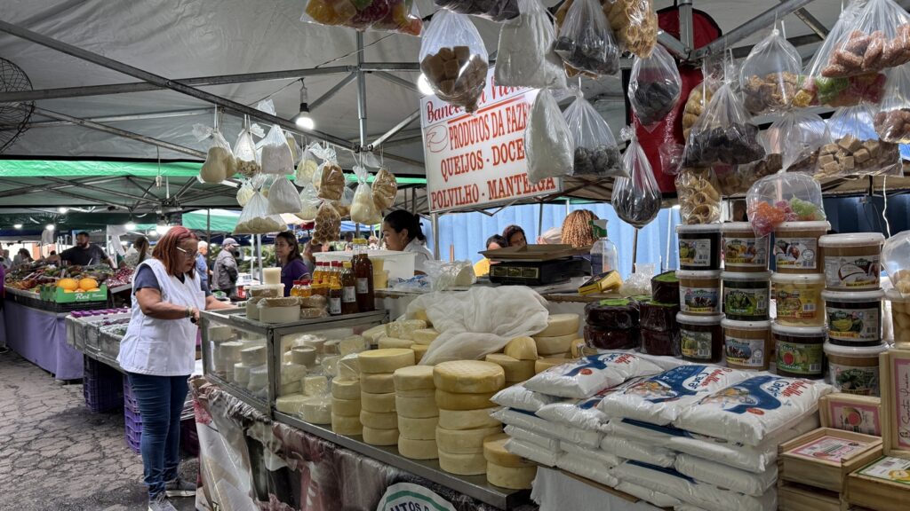 Nilza Aparecida Martins trabalha na Feira Dom Bosco há 55 anos — sempre no mesmo ponto, sempre com os mesmos produtos: queijos e doces. A escolha não foi casual. Veio do pai, também feirante, de quem herdou o ofício e a tradição.