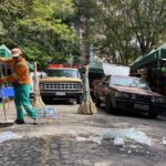 A equipe de varrição com homens e mulheres manejam vassouras como se regesse uma sinfonia de limpeza, transformando o caos de papéis e cascas em um espaço limpo. Em seguida, os caminhões da coleta orgânica passam para levar embora a matéria. Essa logística evita que o lixo espalhado entupa bueiros e garante que a alma da rua permaneça livre de fardos.