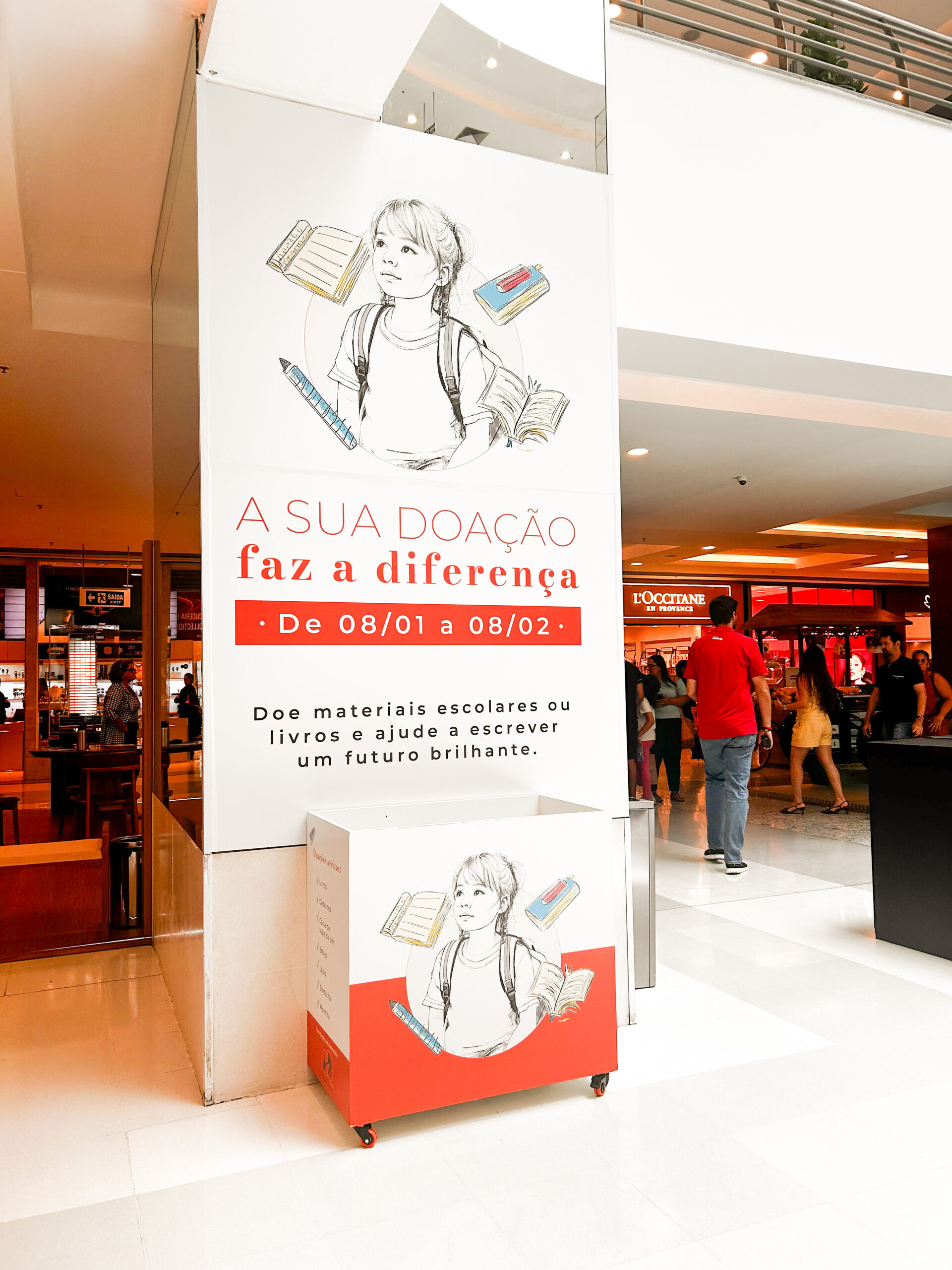 A campanha Volta às Aulas Solidária 2026 do Goiânia Shopping convida clientes e lojistas a doarem materiais escolares e livros literários em bom estado até 8 de fevereiro. Durante o período da campanha, uma caixa de arrecadação estará disponível na praça de eventos), para o recebimento de itens como mochilas, estojos, apontadores, colas, borrachas, lápis preto, lápis de cor, canetas, tinta guache, cadernos e livros literários não didáticos. Todo o material arrecadado será destinado à Instituição Tio Cleobaldo, que desenvolve um importante trabalho social com crianças e adolescentes.