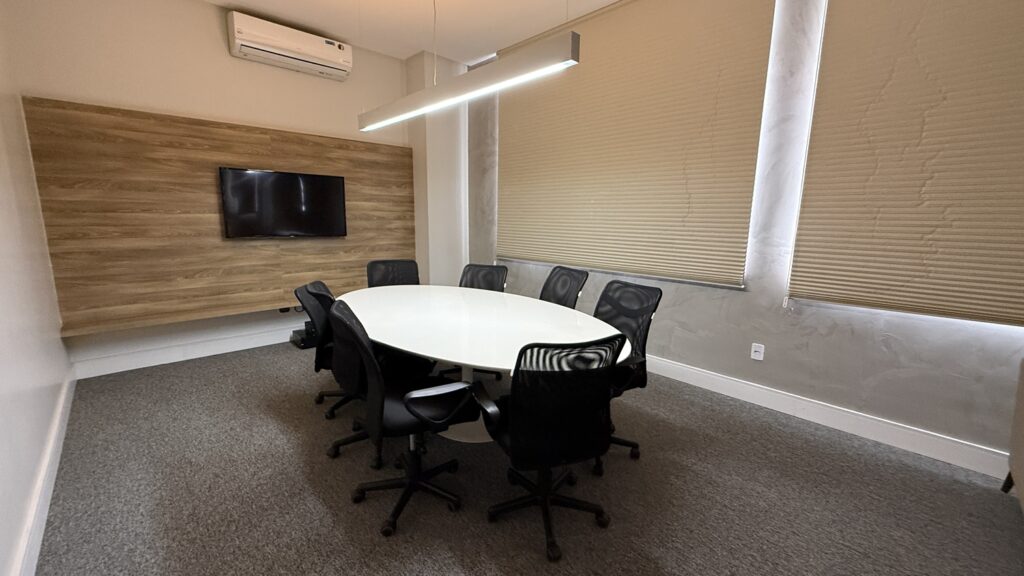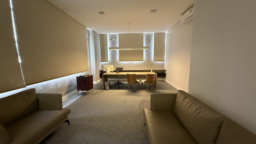 No primeiro andar, o foco é o atendimento ao cliente e a atuação profissional. São salas individualizadas para reuniões, audiências, oitivas e sustentações orais, com capacidade para até 10 ou 12 pessoas, todas equipadas com recursos tecnológicos e acústica adequada. “O advogado pode reservar digitalmente, pelo aplicativo da OAB-GO, pelo tempo que precisar. As salas têm tela com o nome do advogado, o que facilita a localização do cliente”, explica.