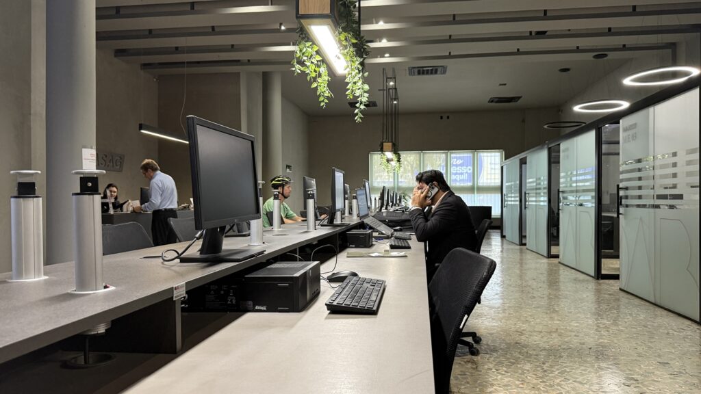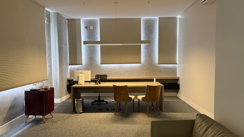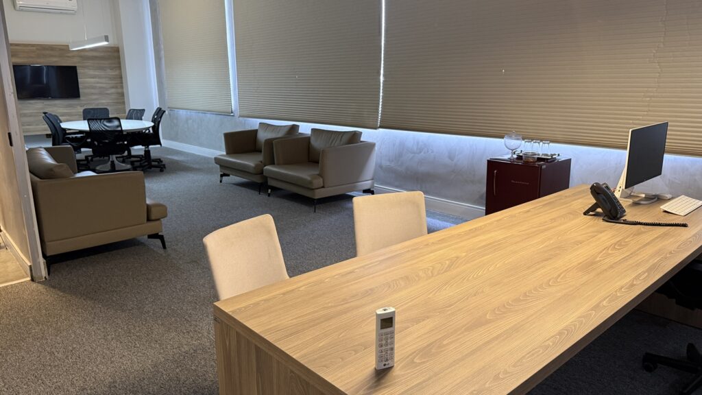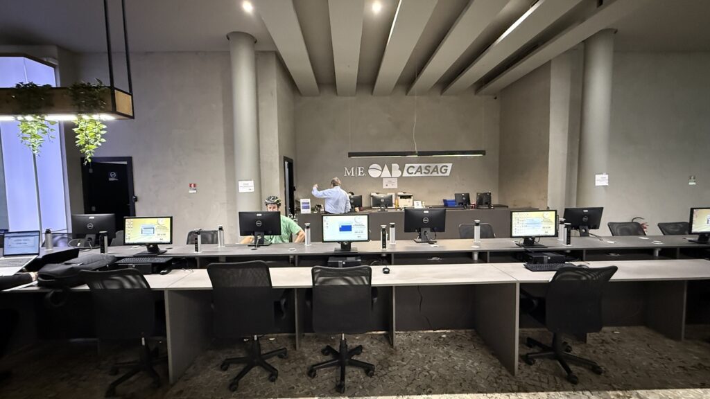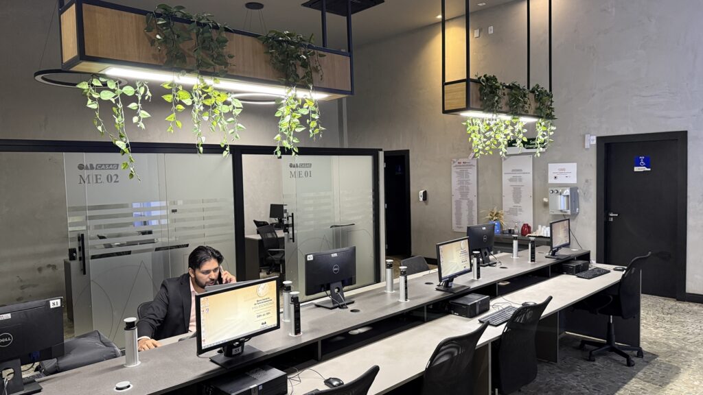 Distribuído em três pavimentos, o espaço foi planejado para atender às diferentes demandas da advocacia. No térreo, o atendimento acontece em baias e estações de trabalho compartilhadas, com computadores, salas individualizadas e equipe preparada para auxiliar no uso de sistemas como Projudi, PJe e PJe-JT. “É um atendimento personalizado para o advogado, com uma equipe que conhece tecnologia da informação e consegue resolver as demandas de forma imediata”, pontua Larissa.