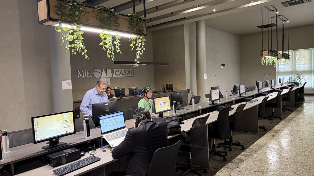 A vice-presidente da Casag, Larissa Junqueira Bareato, explica que o Meu Escritório foi concebido ainda durante a presidência de Lúcio Flávio, como um projeto pioneiro dentro da instituição. “O Meu Escritório foi constituído no período da presidência do Lúcio Flávio, em 2016. A partir dali, a Casag estruturou o espaço em sistema de co-working. Essa ideia inicialmente foi criada para aquele prédio e depois foi levada para as subseções”, afirma. Hoje, o modelo está presente também em outras regiões da capital e no interior do Estado, respeitando as particularidades de cada local.