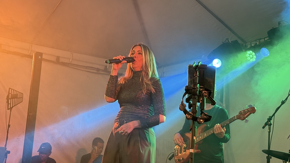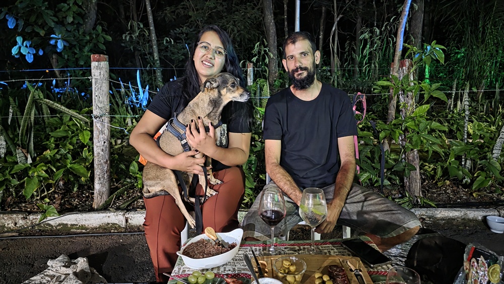 Ao lado do marido, Geovani Milek, e do cachorrinho do casal, ela conta que o evento é um momento pensado para ser vivido em família e destaca o ambiente criado pelo projeto. “A gente fica à vontade, é seguro”, diz, acrescentando que o espaço é acolhedor para diferentes públicos, inclusive para quem leva animais de estimação.