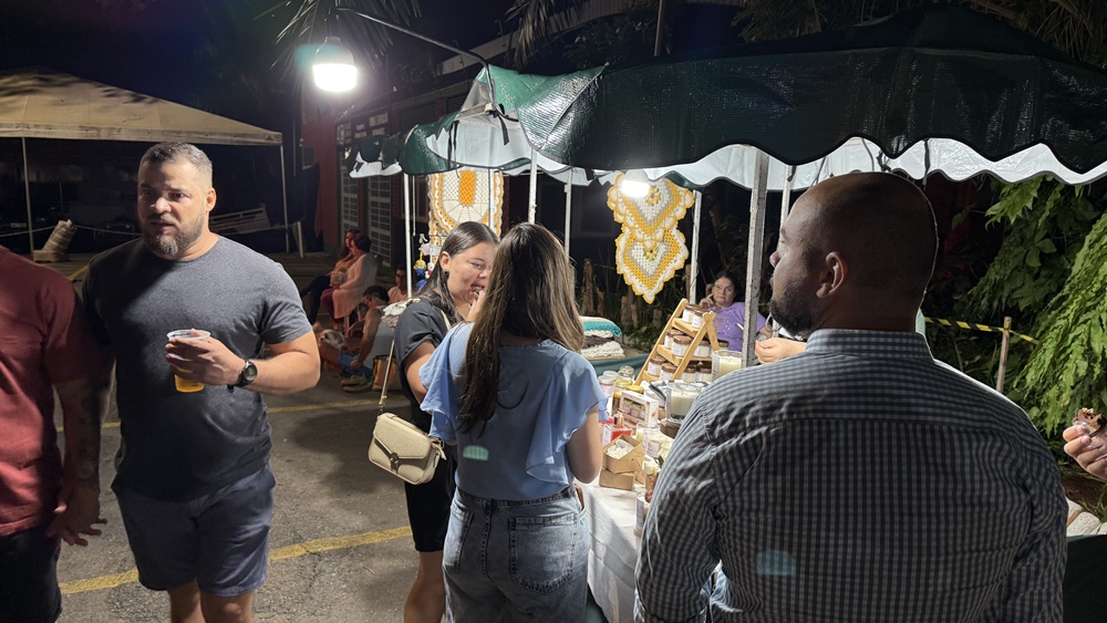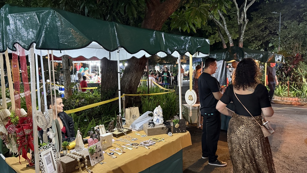 Além de assistir aos shows, o público também consome o que é produzido ali. “A gente compra aqui, prestigia”, conta Beatriz, que relata já ter levado lanches e produtos de artesanato das barracas montadas no bosque. Para ela, participar do Música no Bosque é também uma forma de apoiar quem trabalha no evento. “A gente consome a cultura e consome os produtos também.”