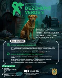 Com o slogan “Dezembro não é só festa. É o mês de vestir o verde da responsabilidade”, a campanha visa combater um problema crônico que se agrava com a chegada das festas de fim de ano e das férias escolares: o aumento expressivo no número de animais domésticos abandonados.