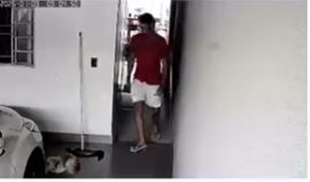 Imagens de câmeras de segurança registraram o momento em que o agressor pisa três vezes na cabeça de um dos cachorros. Em outro vídeo, o animal aparece machucado e com marcas de sangue.