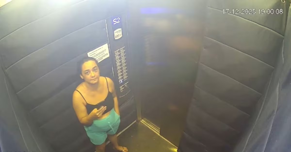 Daiane no elevador do prédio antes de desaparecer (Foto: divulgação)