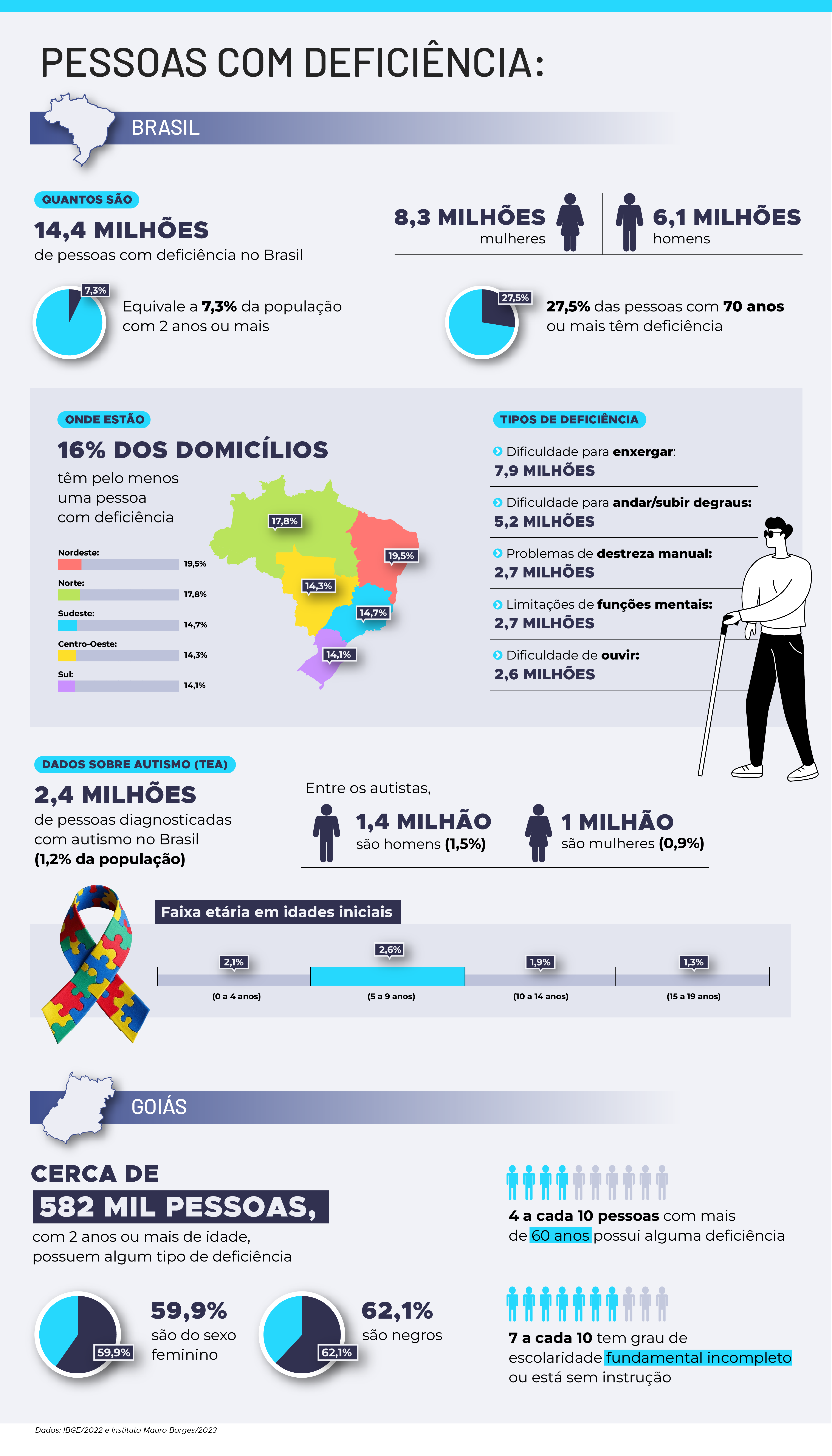 Goiânia - O Brasil tem mais de 14,4 milhões de pessoas com deficiência, o que equivale a 7,3% da população com 2 anos ou mais. Em Goiás, as estatísticas revelam cerca de 582 mil pessoas com algum tipo de deficiência, segundo dados do Instituto Brasileiro de Geografia e Estatística (IBGE). Esse público exerce enorme importância para a economia nacional, pois é responsável por movimentar mais de R$ 5,5 bilhões por ano, de acordo com levantamento da Fundação Getulio Vargas (FGV).