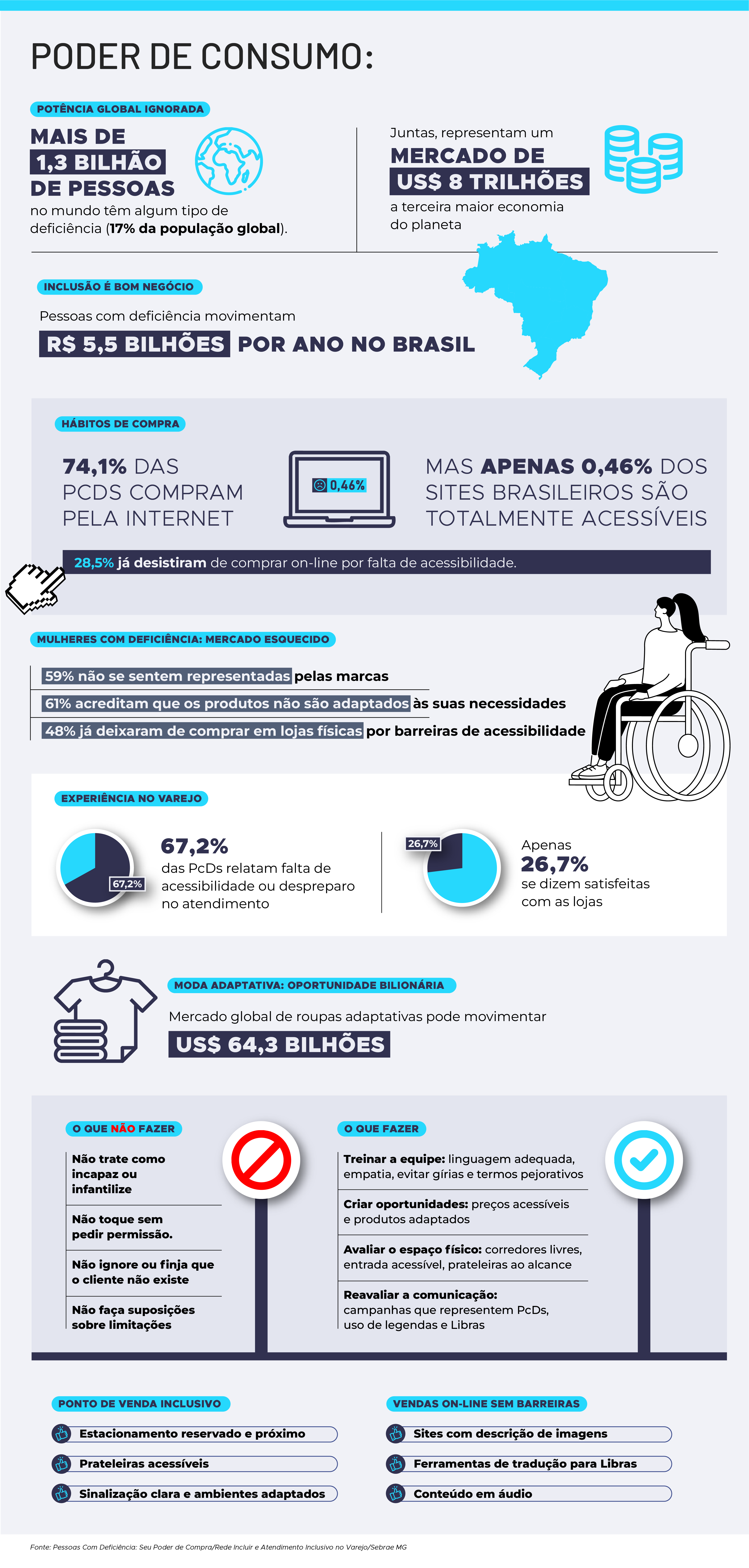 A especialista deixa um recado direto aos empresários que querem dar o primeiro passo: “comece agora. Contratar pessoas com deficiência, perguntar a elas como gostariam de ser acolhidas, oferecer autonomia e respeito são medidas simples que geram impacto imediato. Não infantilize, não subestime. Dê espaço para que cada pessoa mostre suas capacidades. Crie um ambiente de livre diálogo e respeito às diferenças. Quando as pessoas com deficiência se sentirem verdadeiramente incluídas, elas mesmas vão evidenciar o poder de consumo que têm e as lacunas que ainda existem no comércio”, afirma.