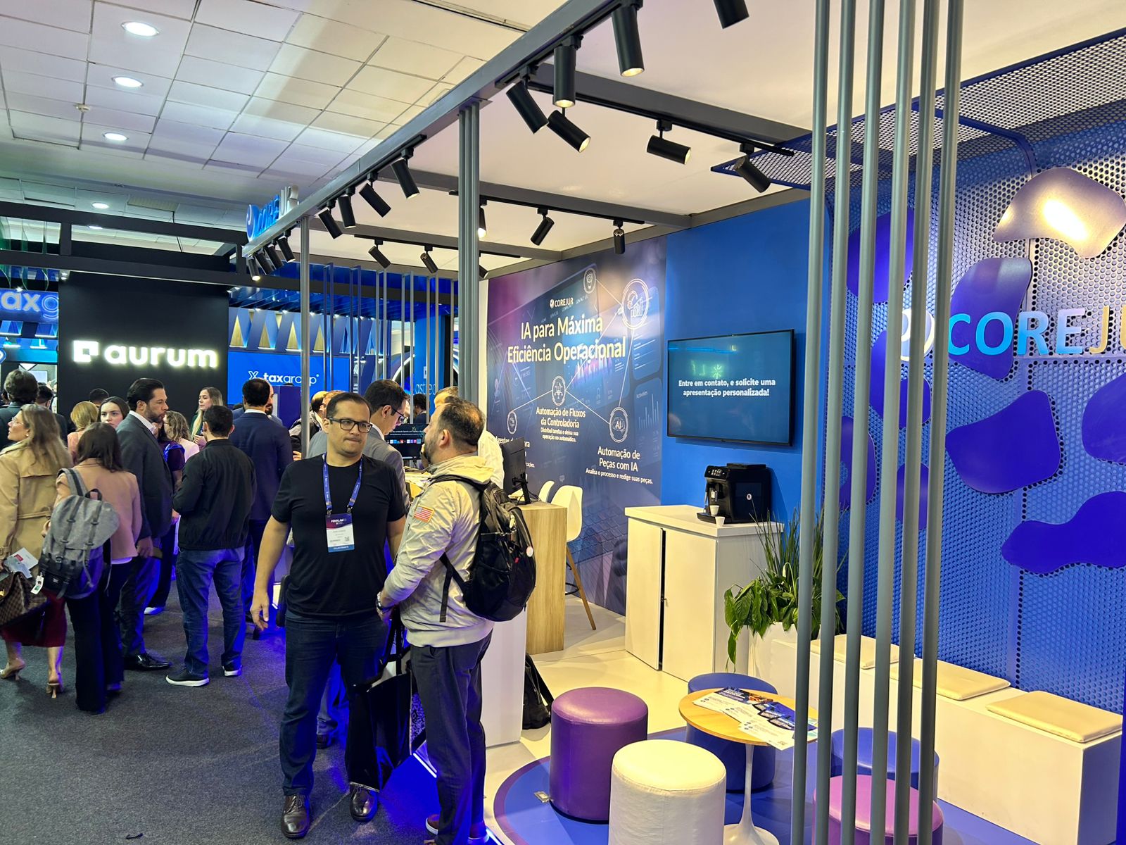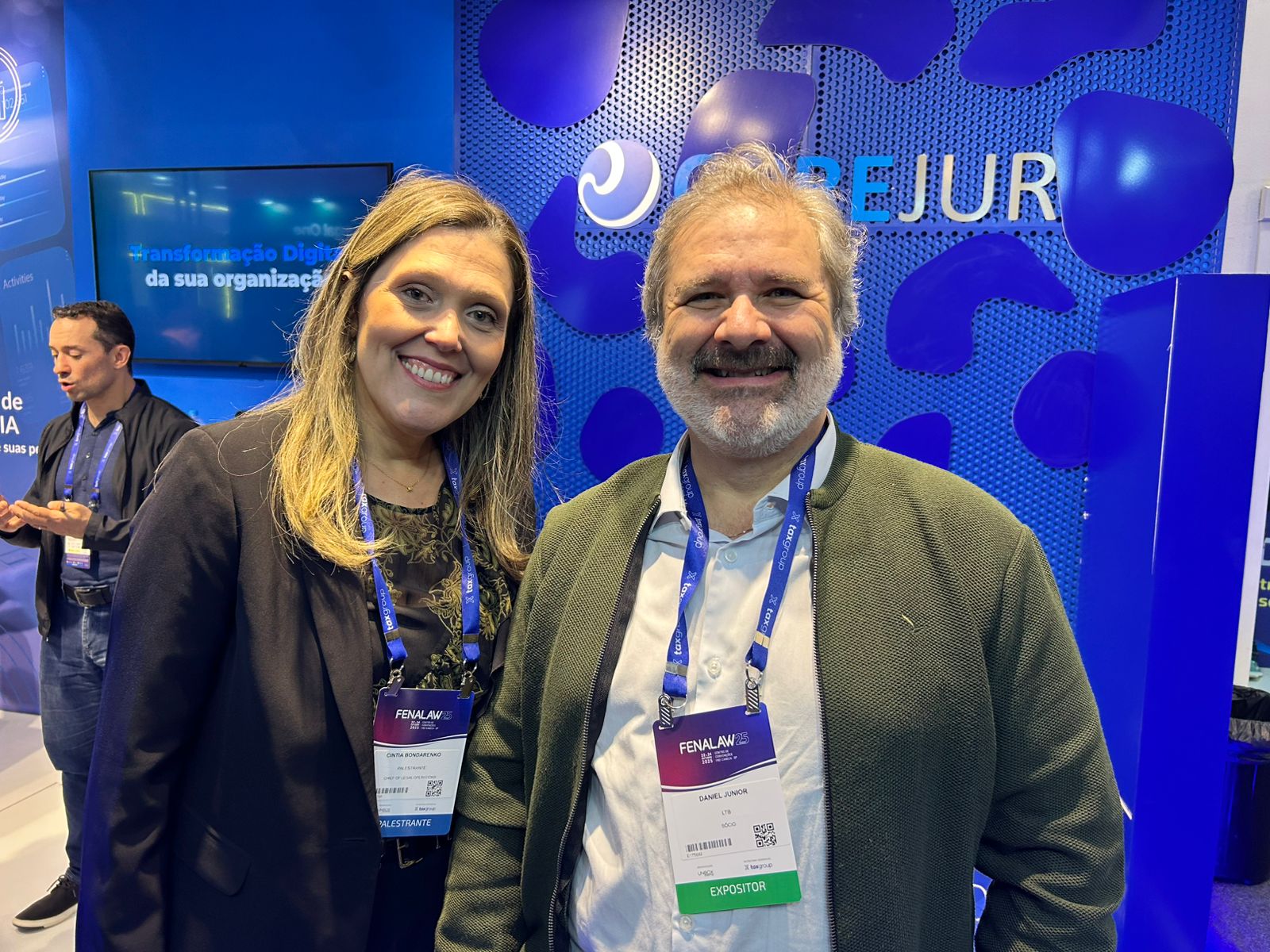 Em seguida, os participantes foram convidados a conhecer o estande da Corejur na Fenalaw, onde foram recebidos pelos sócios Renato e Saulo Cardoso.
